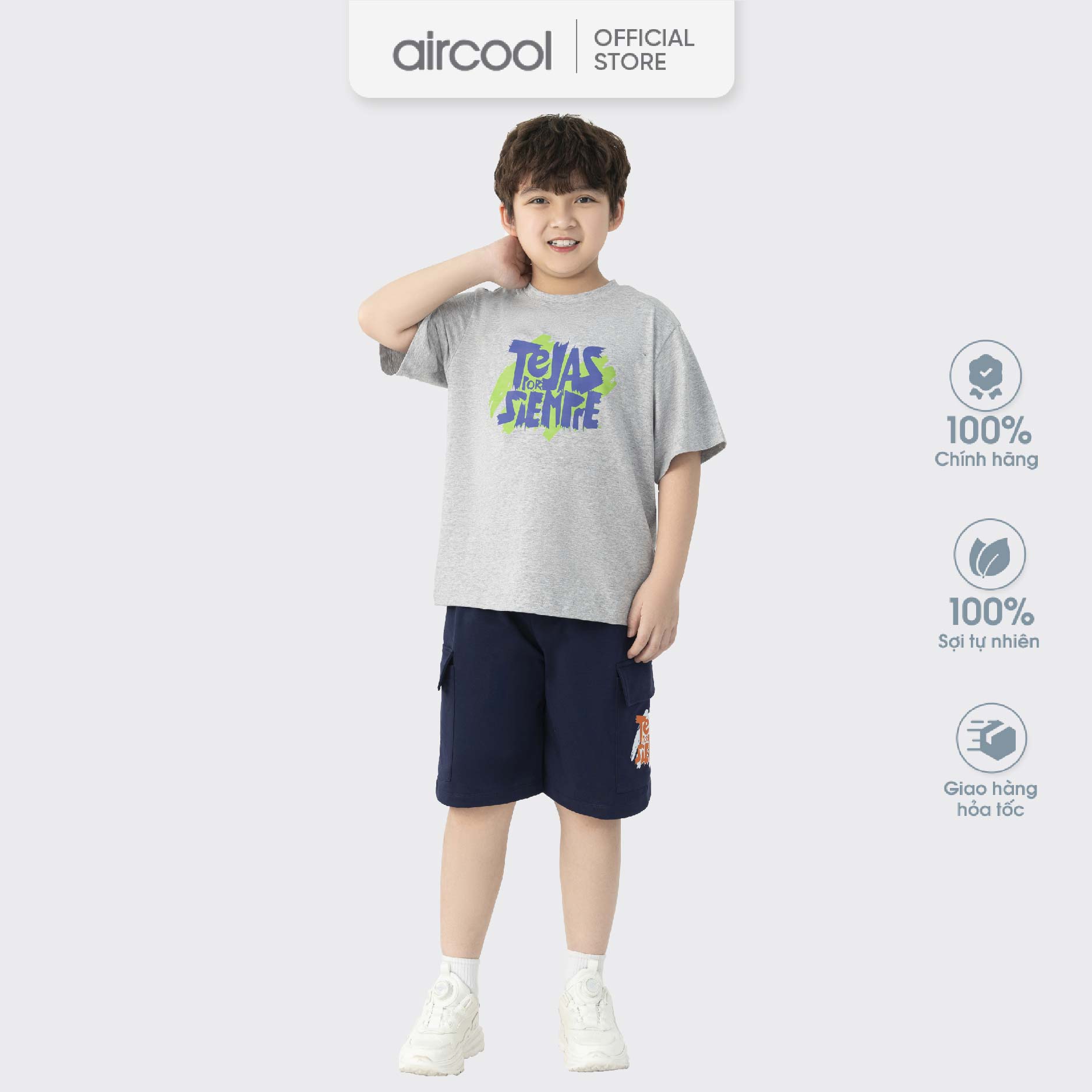 Bộ quần áo cộc tay mùa hè cho Bé trai Aircool chất liệu cotton cao cấp mềm mát-BCBT09